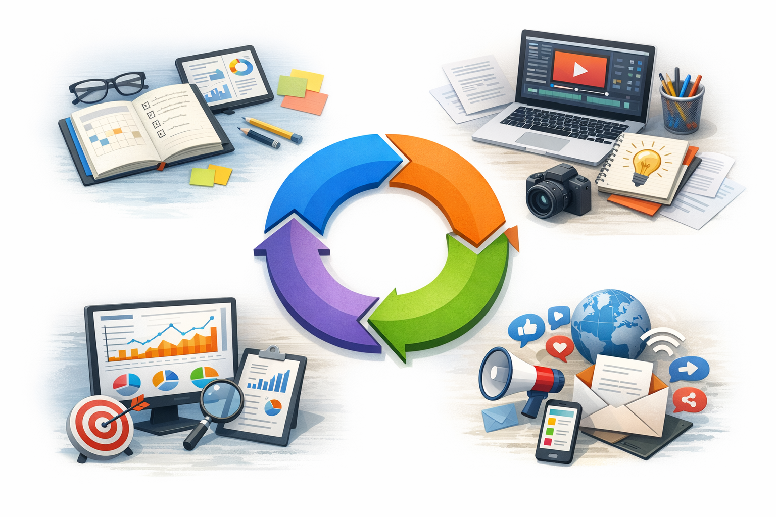Practical tip: For every “pillar” piece, plan 10–20 repurposed outputs: short clips, quote cards, a carousel, a checklist, an email edition, and a sales asset.