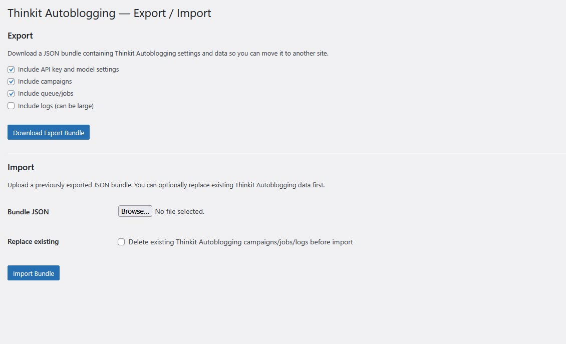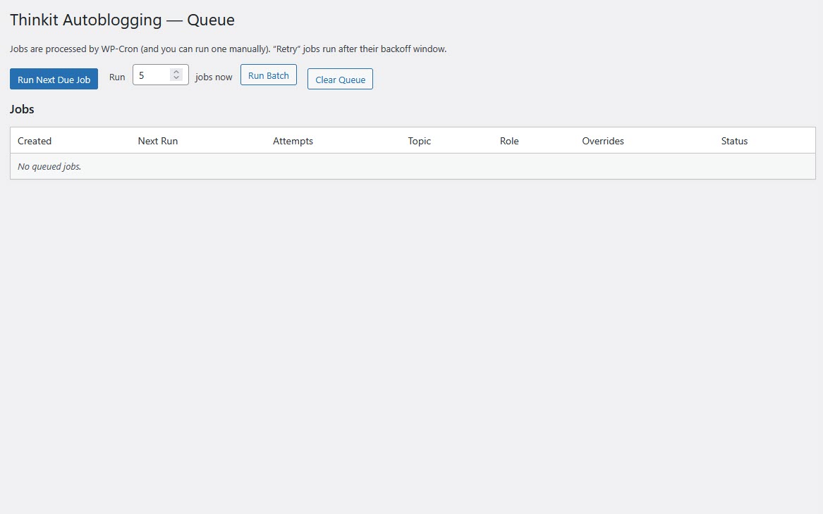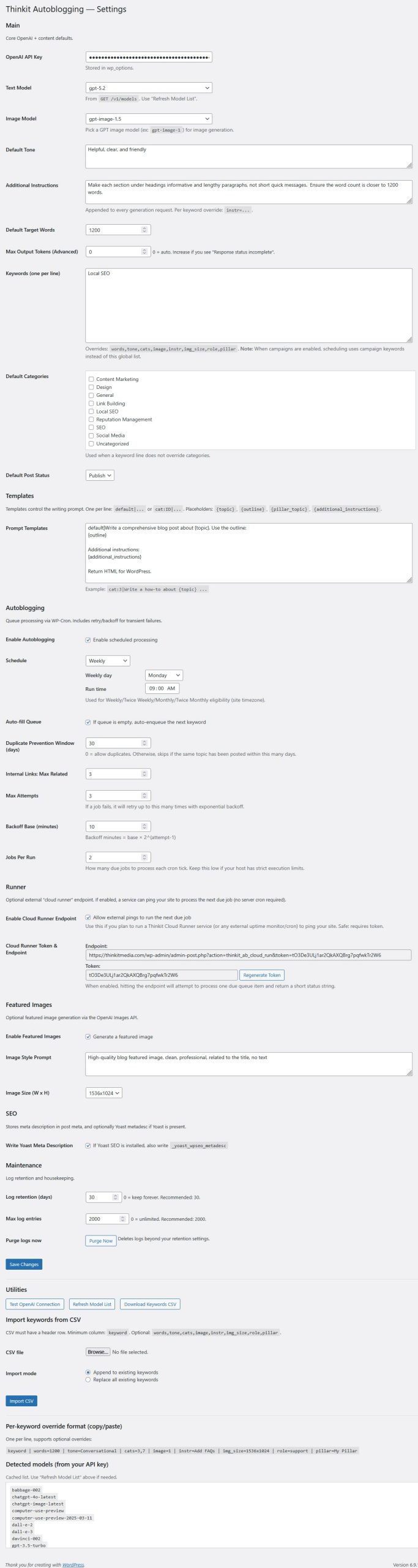 Thinkit Autoblogging™ is the first WordPress autoblogging system built for real-world reliability, scale, and modern AI models.