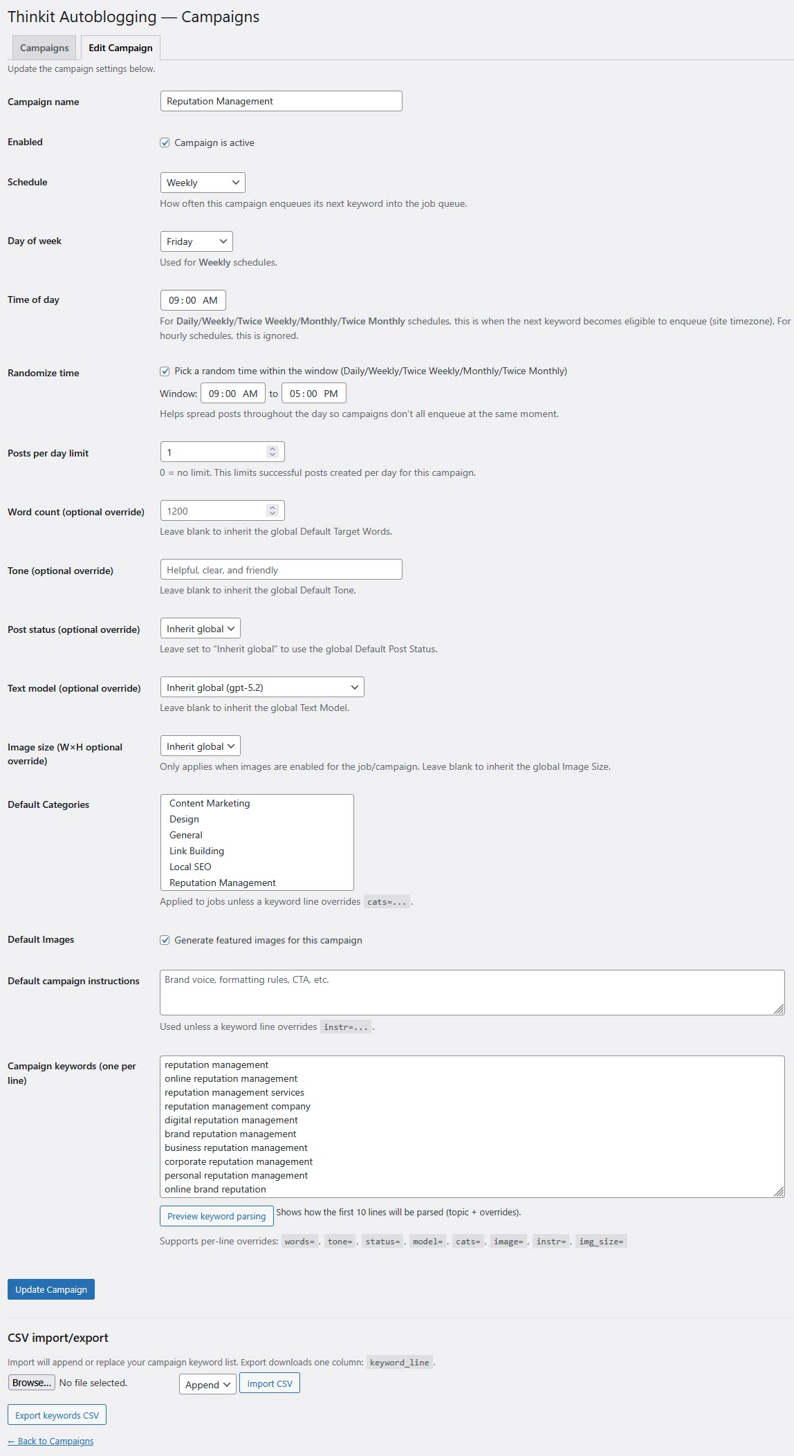 Posts-per-day limits per campaign