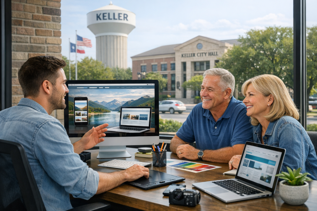 We begin with a discovery session to understand your goals, target customers in Keller, and any community-specific needs. This session can be held virtually or in person by appointment. During discovery we discuss branding, required features (appointments, e-commerce, event calendars), and how your site should reflect the local community.